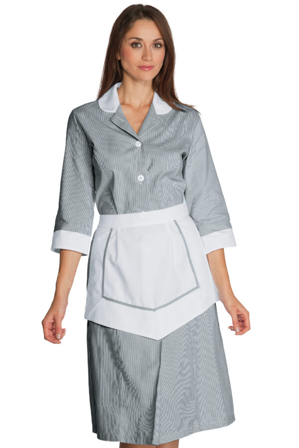 Il camice Lipari è un camice da donna con grembiulino con manica a 3/4 a righe nere. Ottimo nel settore alimentare estetico e sanitario. Divisa da lavoro con grembiule per aziende di servizi o in alberghi e hotel per donne pulizie o servizio in camera.