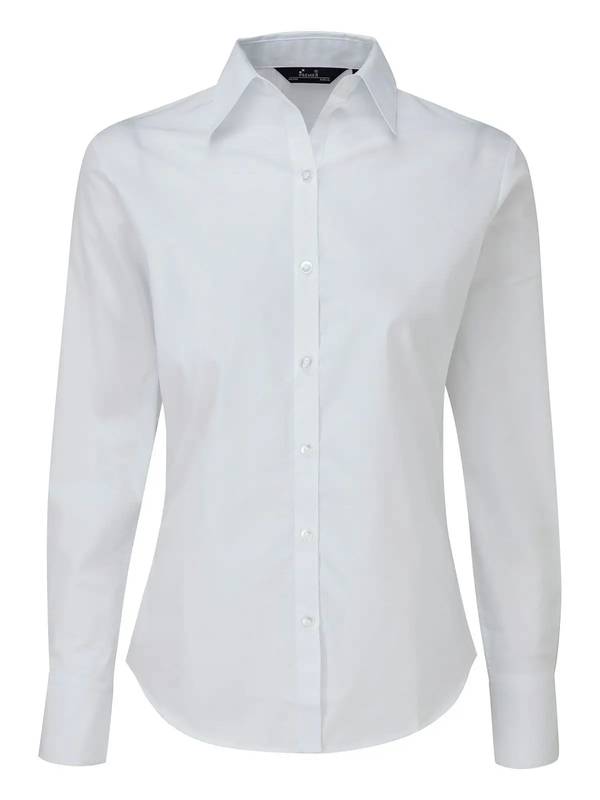 Camicia manica lunga in popeline, finiture con pieghe sul retro e sul davanti per un taglio piu’ aderente, colletto morbido, due bottoni sui polsini.