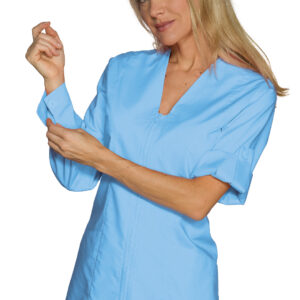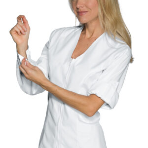 La casacca Benidorm è una camicia da donna a manica lunga bianco. Ideale per settore medico, sanitario, estetico e alimentare. Utilizzata come divisa da lavoro per aziende di servizi. Con cerniera, senza collo e 2 tasche.