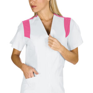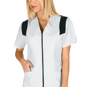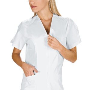 La casacca Santorini è una camicia da donna a mezza manica bianco. Ottima per settore medico, sanitario, estetico e alimentare. Utilizzata come divisa da lavoro per aziende di servizi. Con zip, senza collo, con due tasche e apertura sulle maniche per facilitare il movimento.