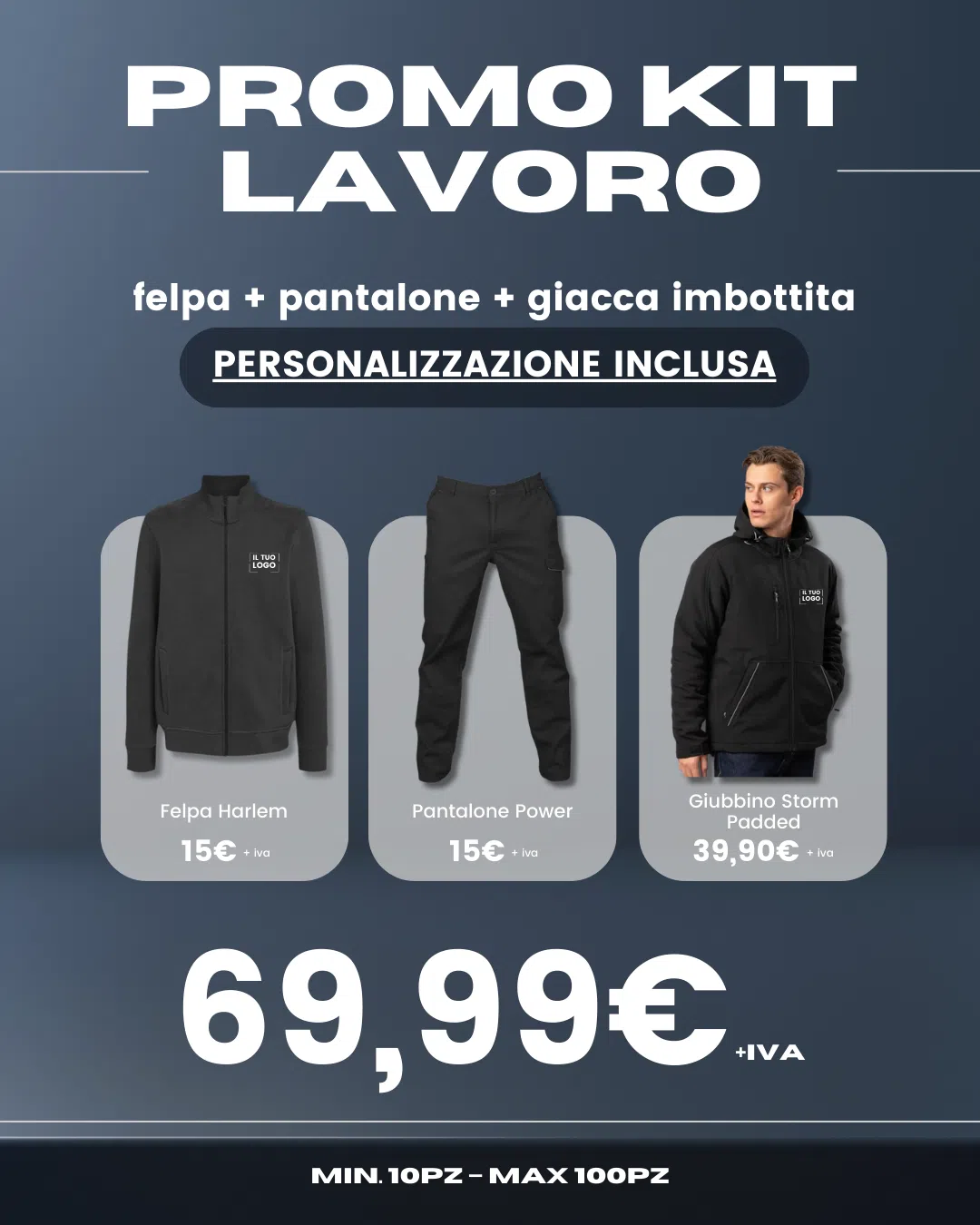 Promo Kit – Felpa + Pantalone + Giubbino a 69,99€ + IVA.