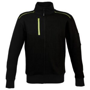 – Una tasca sul braccio con zip e doppio portapenne