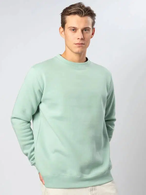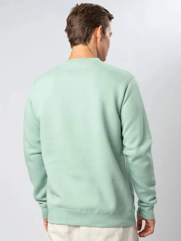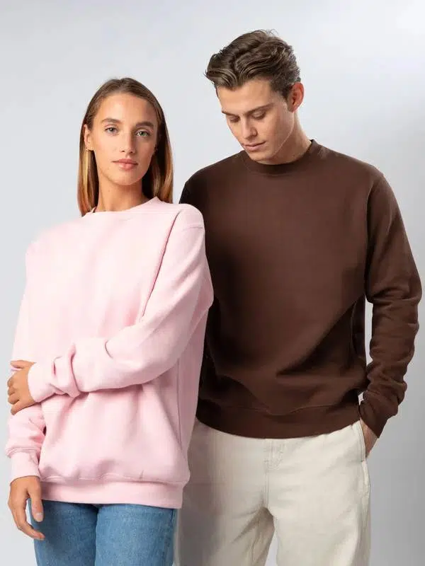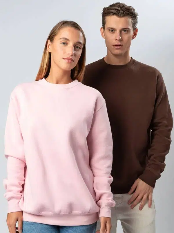 Felpa girocollo, felpata internamente. Collo, polsini e orlo inferiore in costina, rinforzo sul colletto, maniche set-in, struttura con cuciture laterali. Etichetta strappabile. Interno in poliestere ed esterno 100% cotone.