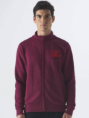 Felpa con maniche set-in, felpata internamente, zip intera, tasche a filetto, orlo inferiore e polsini con costina, struttura con cuciture laterali. Etichetta strappabile. Interno in poliestere ed esterno 100% cotone.