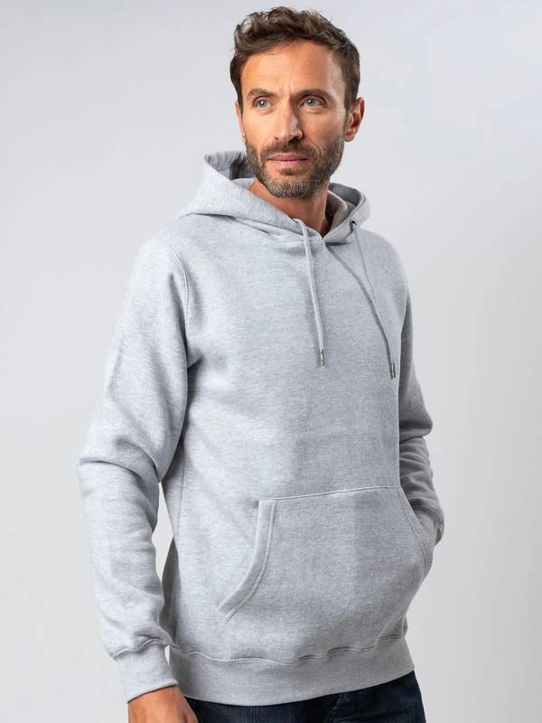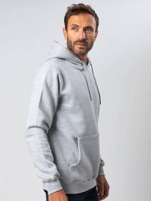 Felpa con maniche set-in, unisex, felpata internamente, cappuccio a doppio strato, occhielli in metallo, cordini con punta in metallo, grande tasca a marsupio, struttura con cuciture laterali, fascia in vita e polsini in costina. Etichetta strappabile. Interno in poliestere ed esterno 100% cotone.
