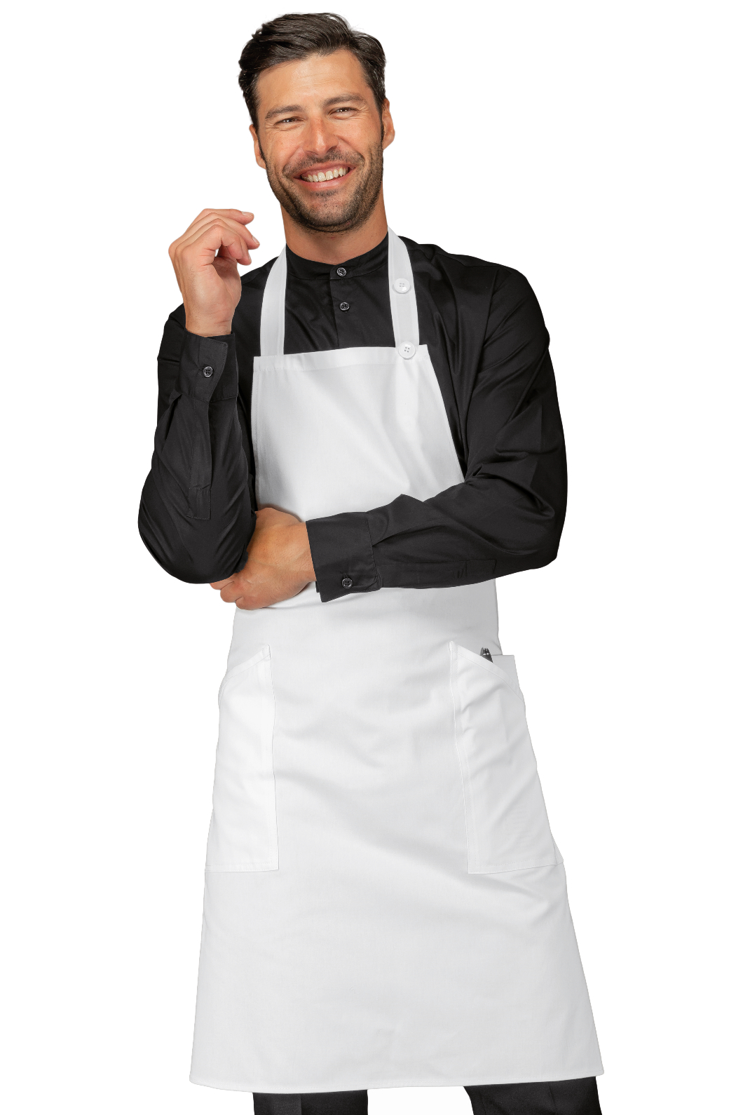 Grembiule Champagne , lungo Unisex Con 2 ampie tasche in vita bianco. Ideale come divisa da lavoro per cantine, bar, enoteche e bistrot. Con allacciatura dietro al collo che ne permette la regolazione della pettorina.