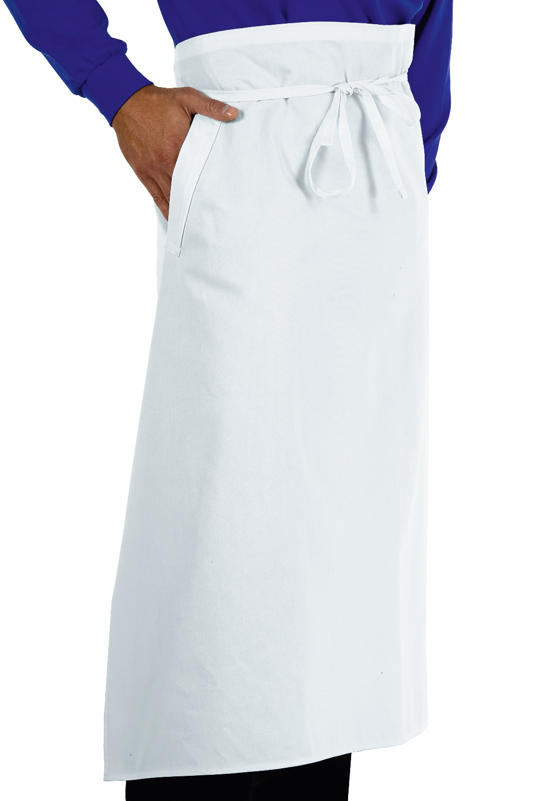 Grembiule Francese vita 100×90 bianco. Ideale per settore alberghiero e parannanza per ristorazione e cuoco. Ideale come divisa da lavoro per bar, pub, ristoranti, alimentari, cucine e catering. Con lacci da 90 cm in tessuto e tasche a filetto.