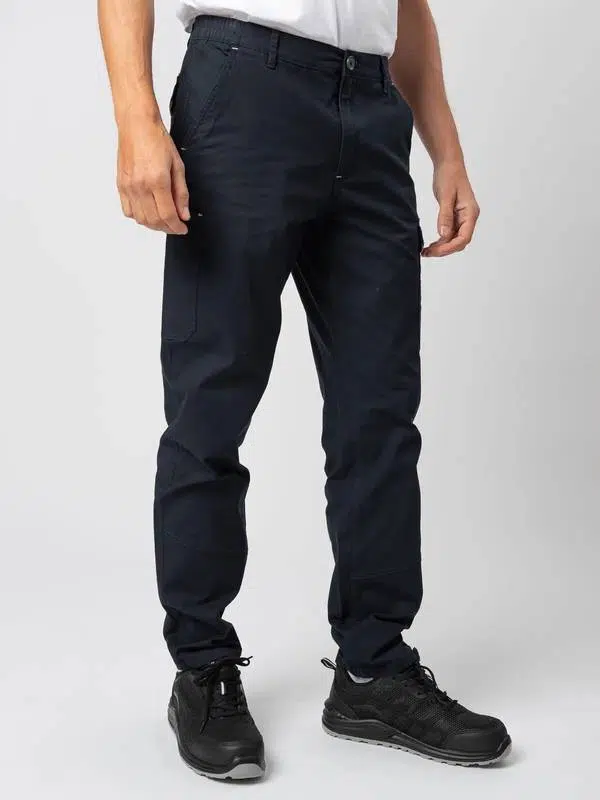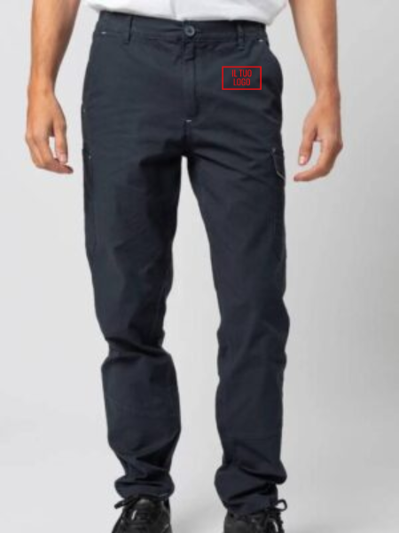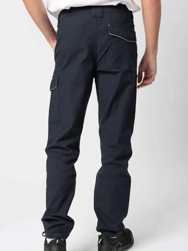Pantalone certificato CE CAT1, multitasche elasticizzato, tessuto prelavato, due tasche anteriori, una tasca laterale con piping e chiusura in Velcro, una tasca porta metro o portautensili, una tasca posteriore con piping riflettente e chiusura in Velcro. Inserto HiViz nel fianco e nel retro. Triple cuciture per una massima resistenza del capo, impunture di rinforzo in colore a contrasto. Due cuciture anteriori sotto il ginocchio, elastici in vita e passanti maggiorati. Etichetta strappabile.